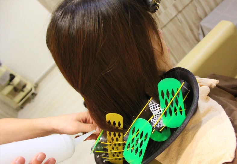 If you noticed, I added that a bad experience I once had at a hair salon was the strong ammonia smell from the colour dyes and other chemicals during the process. Before we began the perming process, Yoshi took note and asked me if the perming solution's smell was okay for me! The perming solution is made in-house by themselves, and it has no smell at all unless you sniff really hard at it close-range.